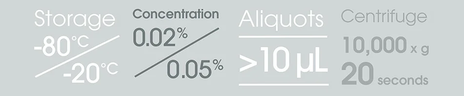 对于我们的许多抗体而言,分装为小等份(推荐每份体积为 10 μL)在 -20 ℃ 或 -80 ℃ 下冻存是最佳的保存条件。分装抗体可以最大限度减少冻融对抗体造成的损坏,还可避免多次从同一管中移取抗体而引入污染。分装后抗体只可冻融一次,如有剩余,应保存在 4 ℃ 下。
