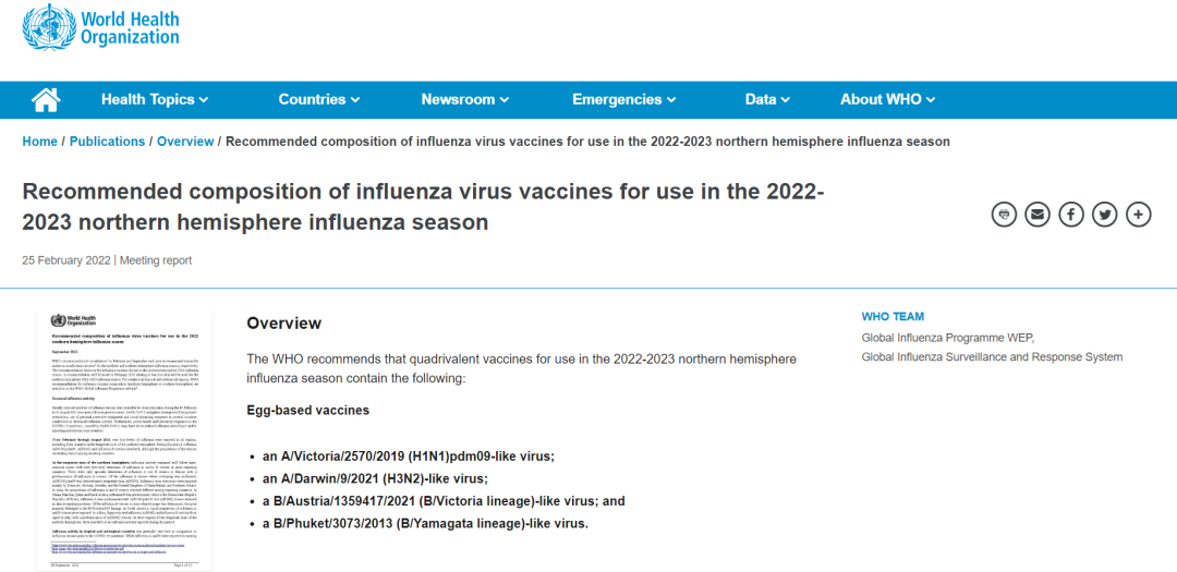 WHO | 2022-2023北半球流感毒株信息已发布